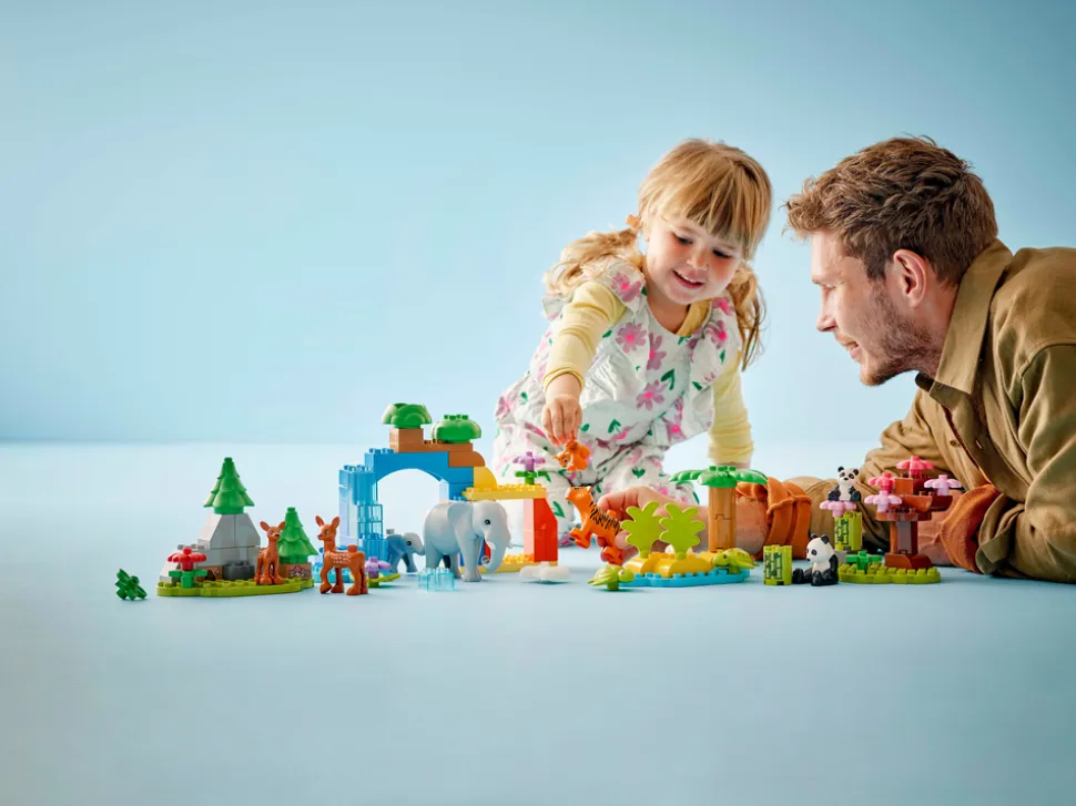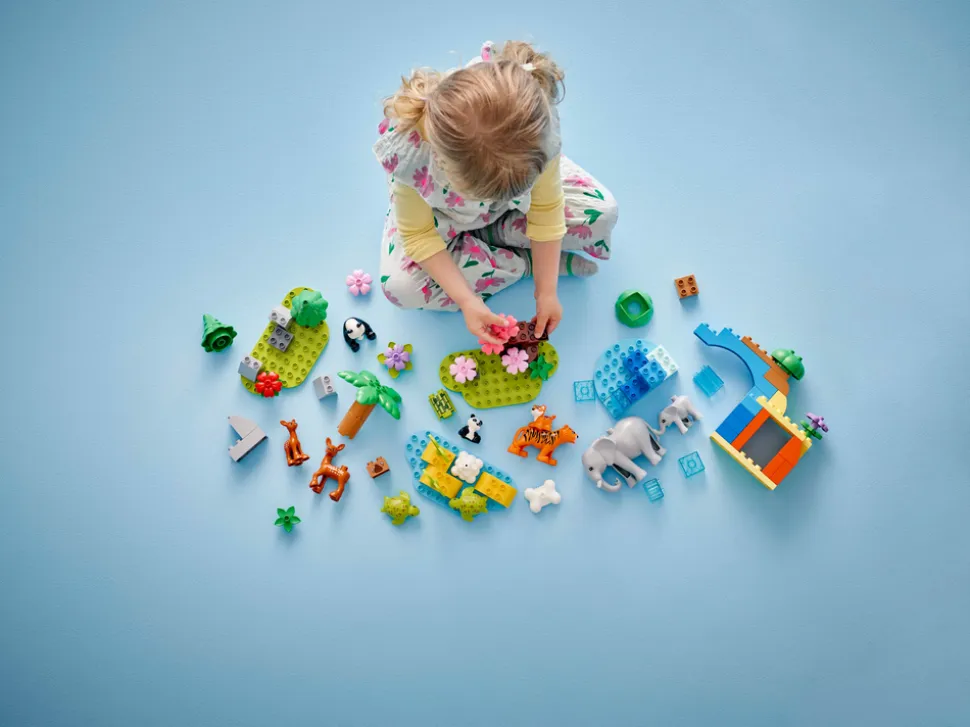 - Naturleke som lærer små barn om omsorg og relasjoner – barn lærer om stedet hvor LEGO® DUPLO® dyrefigurene lever, hva de spiser og hvordan de tar vare på ungene sine