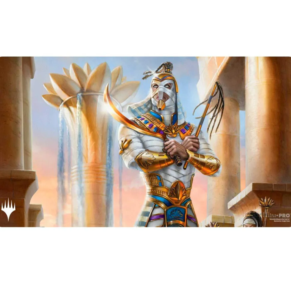 Playmats featuring popular Magic: The Gathering artwork. Made with a soft fabric top to reduce damage to cards during play and a non-slip rubber backing to keep the playmat from shifting during use, playmats enhance the gameplay experience. With dimensions of approximately 24 in. x 13.5 in., a playmat also makes an excellent oversize mousepad for home or office.