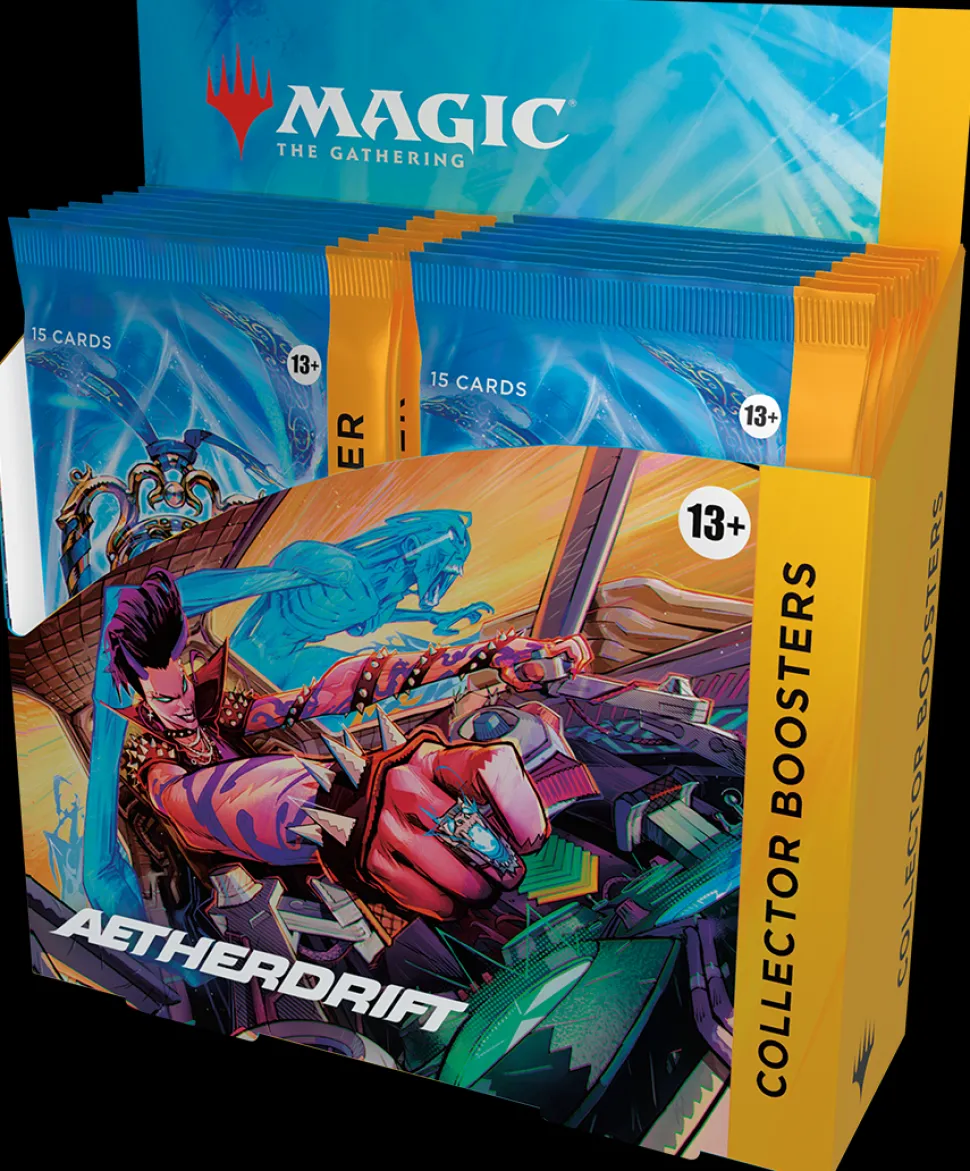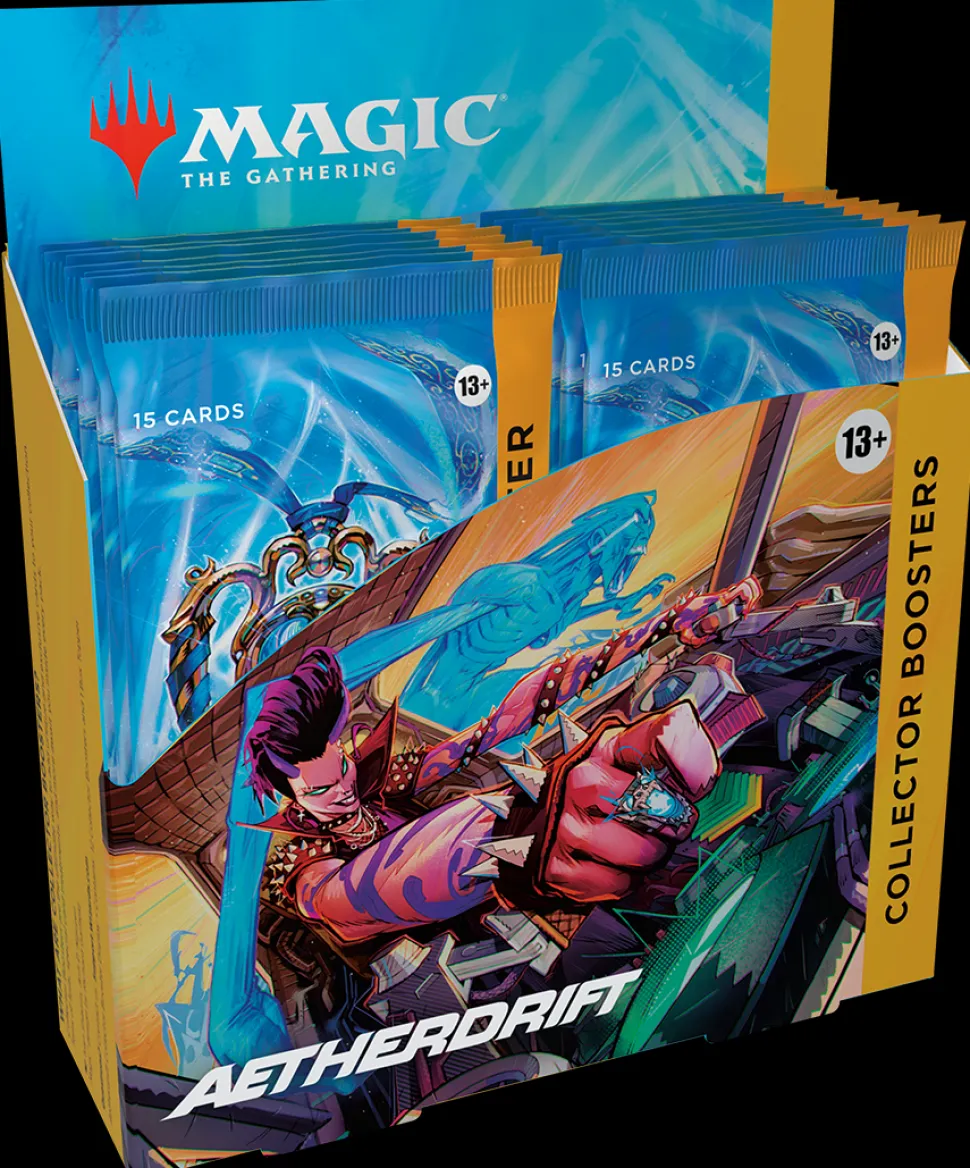 - 12 Aetherdrift Collector Boosters; each Collector Booster contains 15 Magic: The Gathering cards