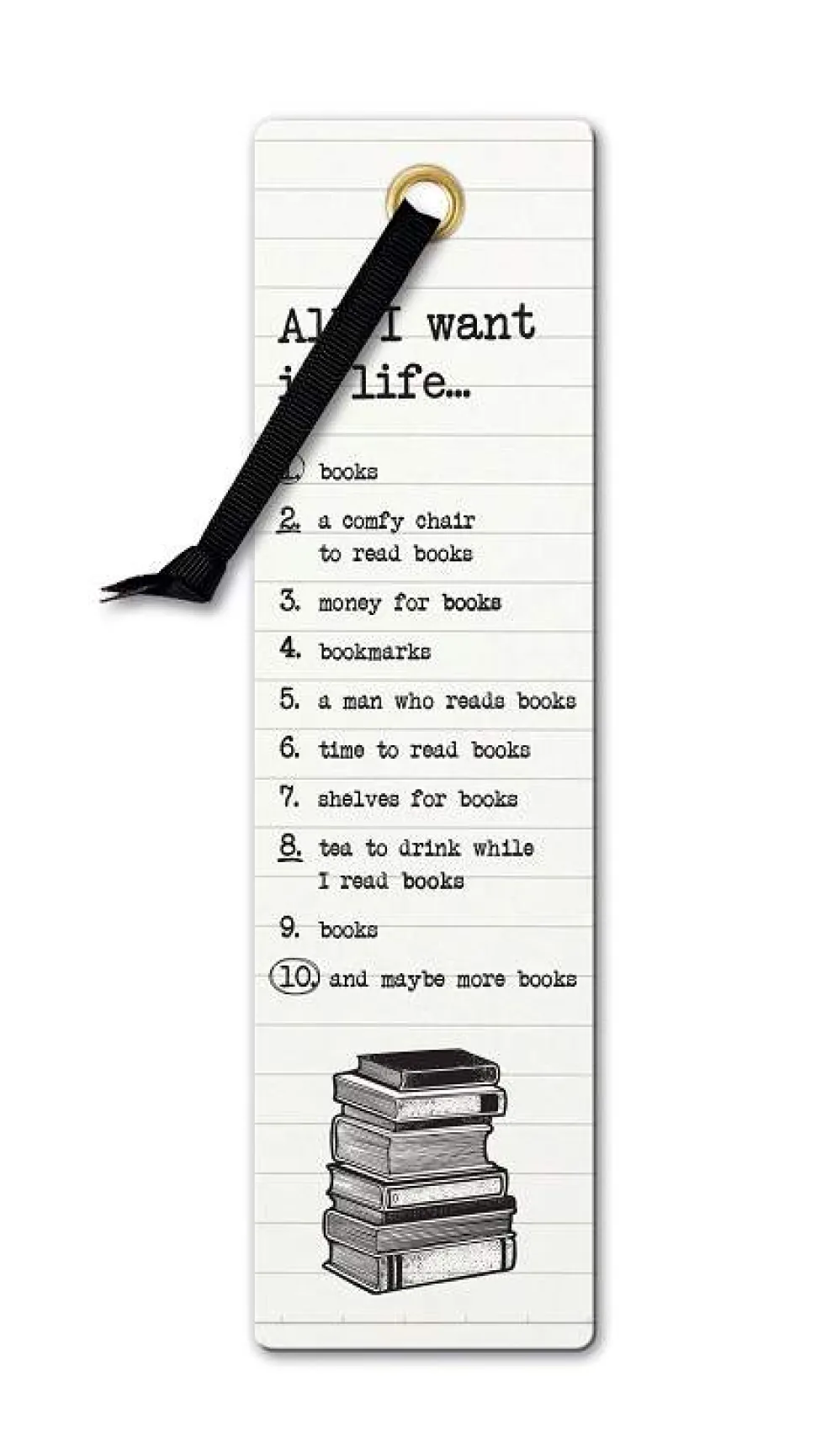 Bokmerke «All I Want in Life…» i Literary Collection i kraftig kvalitetskartong med tekstilbånd. Bokmerket er trykket på FSC MIX Paper C134008.