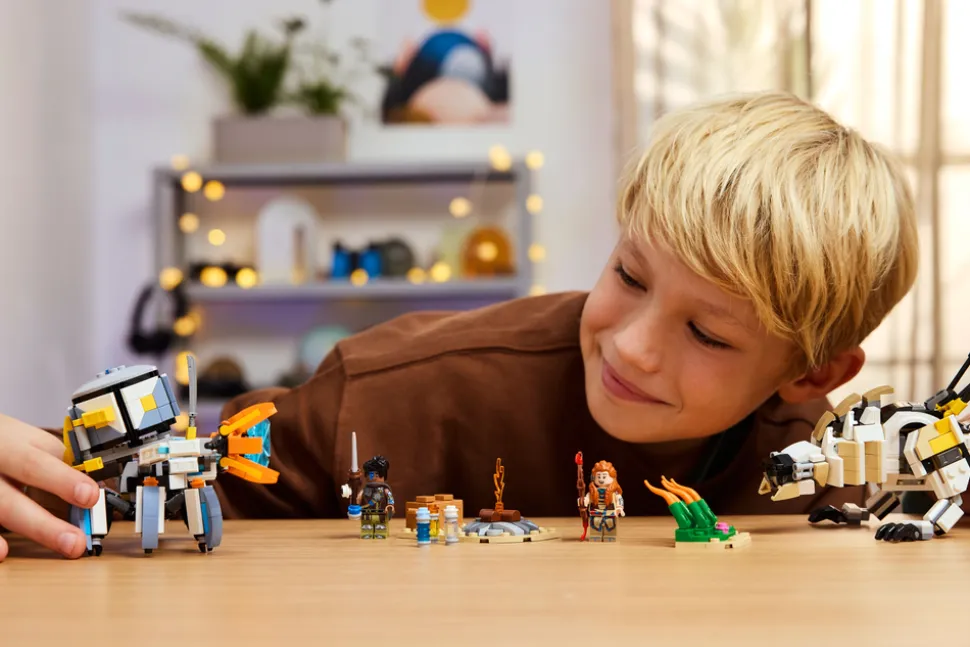 - LEGO® eventyrleke – barn kan bli med Aloy og Varl som kjemper mot to fullt bevegelige maskiner – en skallvandrer og en sagtann – og skifte elementer på våpnene for å angripe med ild, støt eller kulde