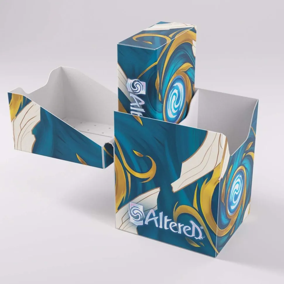 The Altered® Expedition Soft Box is the all-in-one casual solution for players of the highly awaited TCG. This full color printed and officially licensed deck box is packed with ingenious features. It protects a full double-sleeved deck of cards and includes an innovative token box! This token box has a smart click-lock mechanism to keep all tokens safely stored – even while pulling it out. Once opened, the lid of the box stays upright for convenient access during gameplay. The Expedition Soft Box is equipped with Gamegenic’s very own Cobra Neck-Technology: the lid can be opened more than 180° for easy access. Additionally, it comes with a self-locking lid and write-on-strip. The separator inside ensures that the deck stays in place, even when the token box is taken out. The Altered® Expedition Soft Box comes in two amazing designs from the game and is a must-have for all Altered®, TCG, and LCG players.