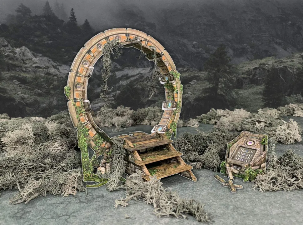 This pack upgrades your gaming table with a mystical gate. The set includes a runic console and creeping vines, and adds a new dimension to your games. The vortex in the centre is removable. The pieces are compatible with the rest of the Battle Systems Fantasy range.