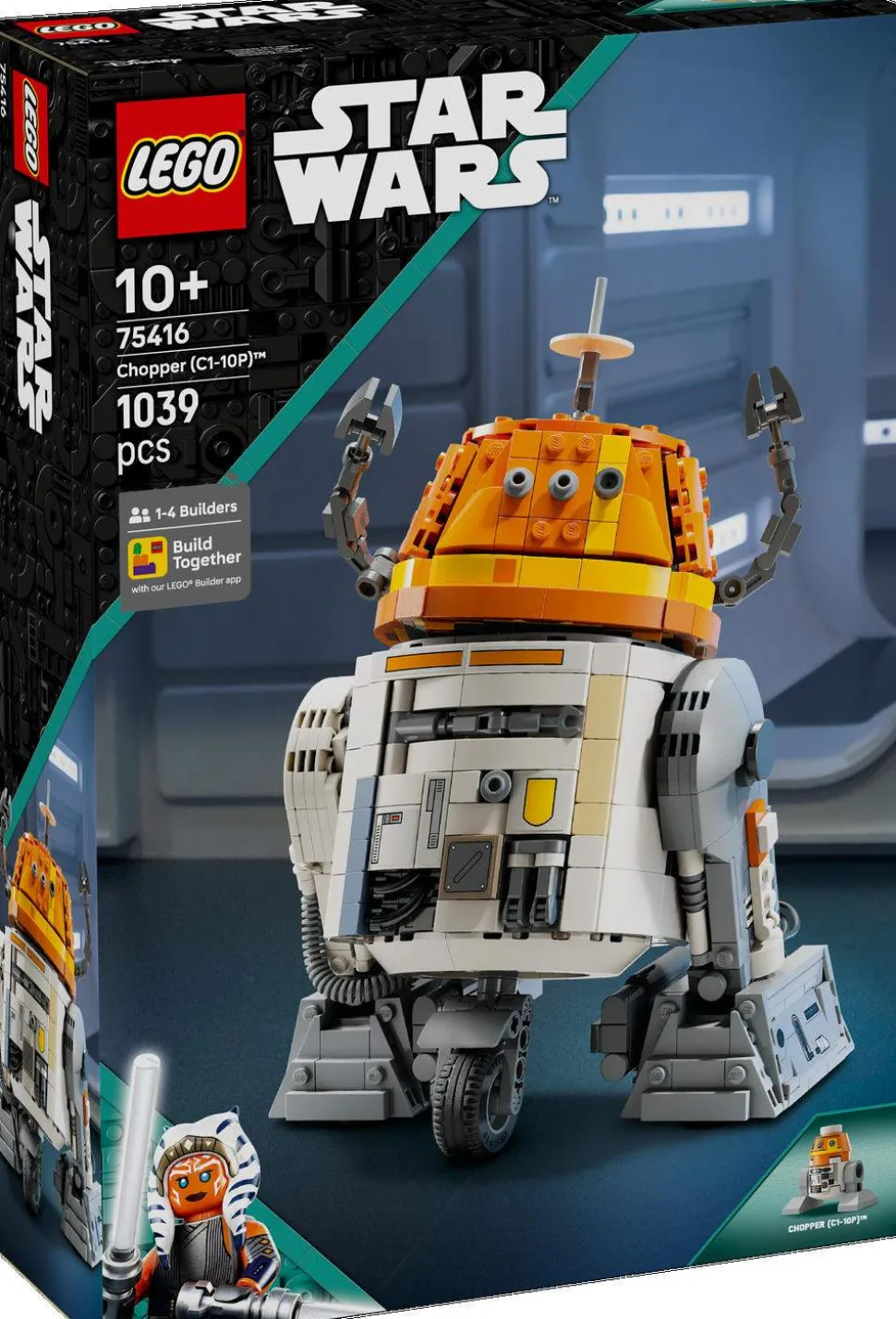 Med denne byggbare LEGO® Star Wars™ lekemodellen (75416) kan barn bygge en gøyal utstillingsmodell av den populære astromech-droiden Chopper (C1-10P). Den realistisk detaljerte byggefiguren av Chopper fra Star Wars: Ahsoka™ passer som søt bursdags- eller julegave til jenter, gutter og fans fra ti år. De kan bevege spaken på ryggen for å aktivere Choppers ikoniske hodebevegelser, plassere armene og bena hans i ulike positurer, felle ut et verktøy fra brystet hans og mer. Choppers armer og midtre hjul kan tas av, slik at det ser ut som om de har blitt trukket inn i kroppen hans.