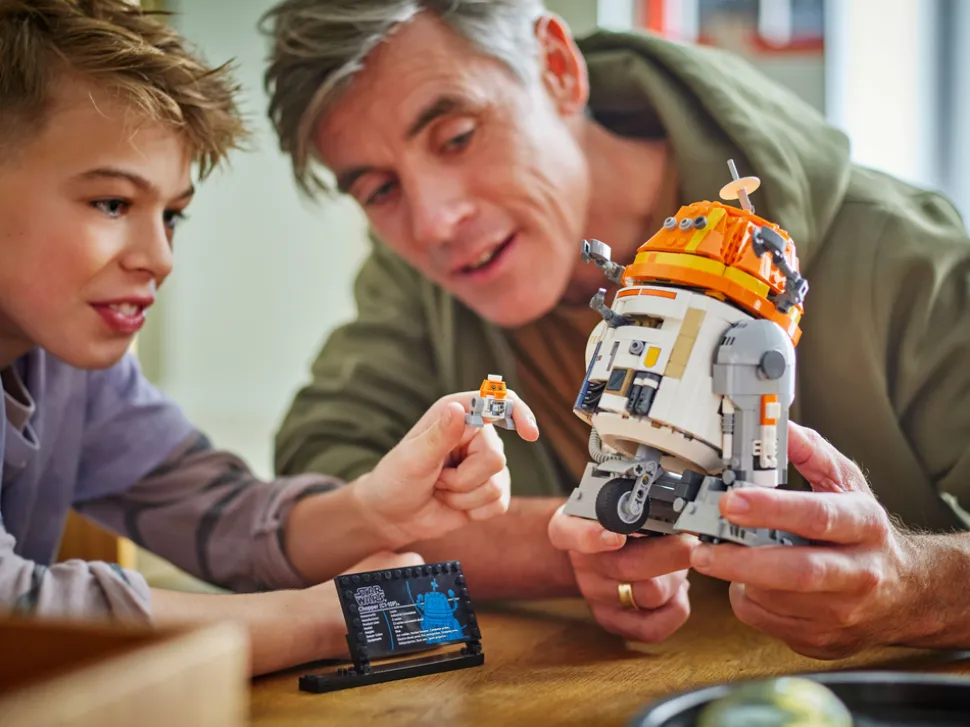 - Byggbart LEGO® Star Wars™ lekemodellsett for barn – lag en gøyal utstillingsmodell med en byggefigur av den populære astromech-droiden Chopper (C1-10P), som er med i Star Wars: Ahsoka™-eventyrserien