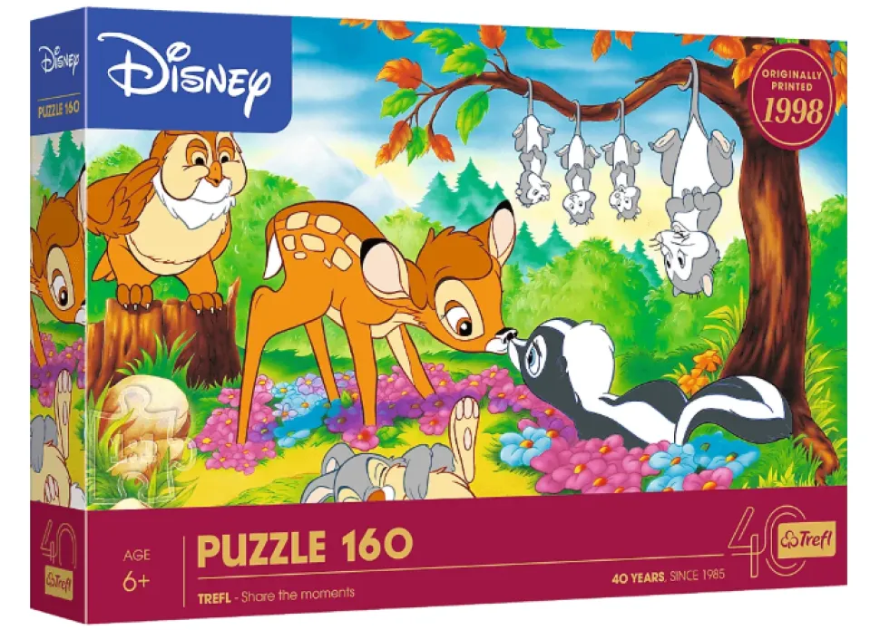 The 160 piece puzzle results in a 410 x 275 mm image depicting Bambi and his friends.
