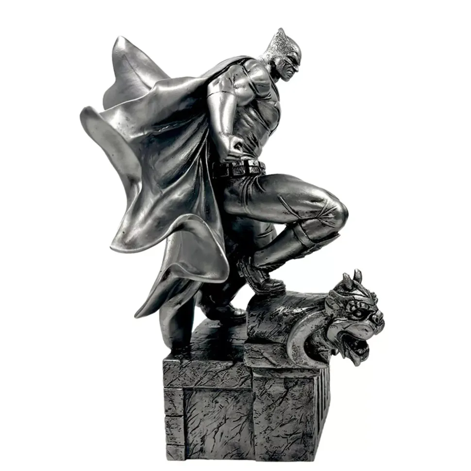 This detailed resin figurine features Batman perched atop a gargoyle as he surveys Gotham City below. The Dark Knight’s signature cape flows dramatically behind him in an air of brooding mystery.