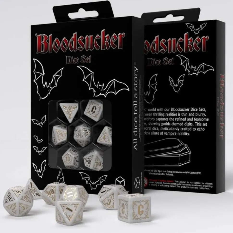 From the depths of ancient crypts and the shadows of forgotten tombs emerges theBloodsucker Dice Set: Immortal, a weapon imbued with the power of eternal life. The shimmering white dice, adorned with golden embellishments worthy of the most powerful vampire houses, make this set an indispensable piece of equipment for anyone seeking to wield the infinite power of the undead.