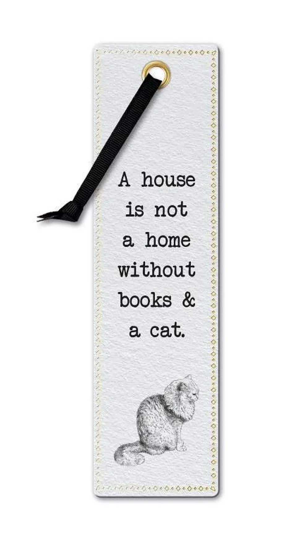 Bokmerke «Books & A Cat» i Literary Collection i kraftig kvalitetskartong med tekstilbånd. Bokmerket er trykket på FSC MIX Paper C134008.