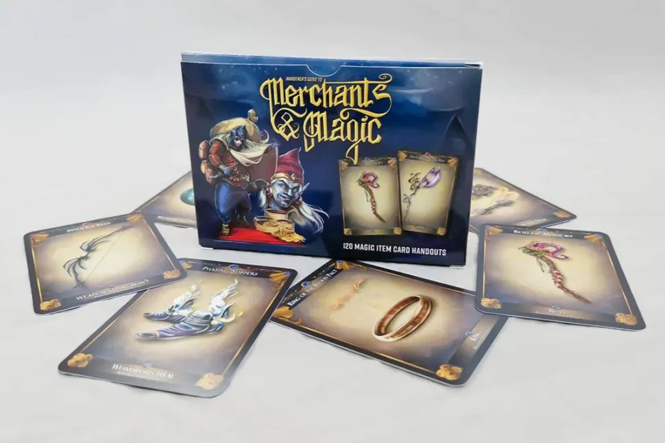 Get a high-quality printed deck containingall120 new 5E magic items inWanderer’s Guide to Merchants & Magic.
