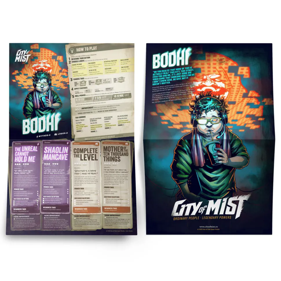 Fourteen (14) beautifully-illustrated pregen character folios that double as posters, including the 7 original City of Mist cast and 7 new additions!