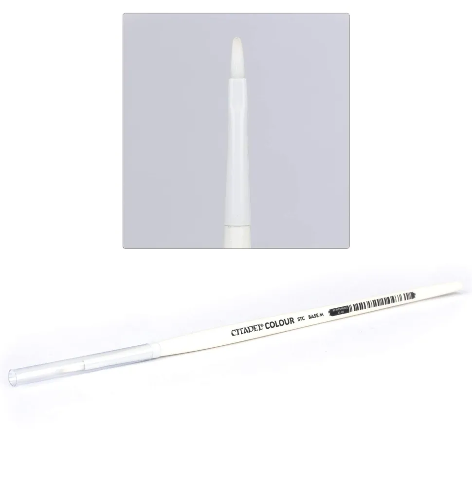 The Citadel Colour STC M Base brush is the perfect workhorse brush for new and veteran hobbyists, featuring a flatter, curved head that gives a smooth and even coat ideal for Citadel Base paints. Turn the brush sideways and the narrow edge is excellent for painting lines and sharp details on your miniatures, making it easier than ever to clean up rough spots and have your paint jobs looking pristine.