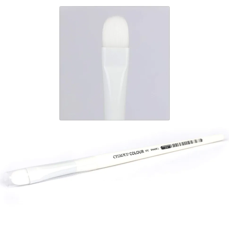 When painting large models with Citadel Shade paints, it’s important to get an even, smooth coat for best results. That’s why our L Shade brush has the broadest tip of any Citadel brush, perfect for picking up loads of paint and getting it all over the biggest Greater Daemons and Imperial tanks you can get your hands on.
