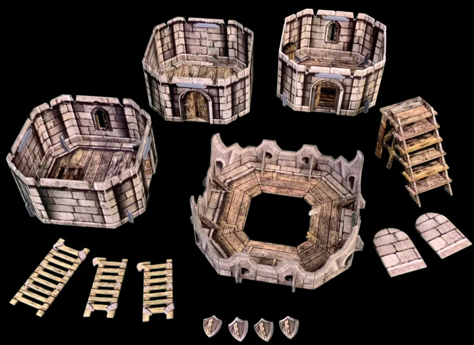These well-fortified towers provide covering fire to the neighbouring walls from their ramparted rooftops, while the internal rooms can be well-stocked with supplies to keep the citadel defenders fighting fit.