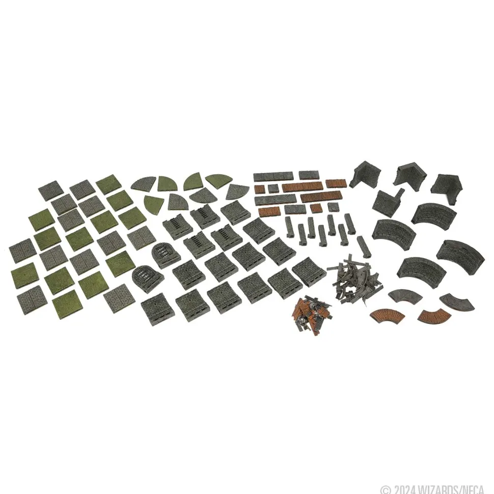 This WarLock set includes new double-sidedsewer channel tiles and walkway tiles. Channel tiles depictmurky sewer water on one side and stone tiles on the other and can be stacked to create a rising tide effect. Walkway tiles serve as narrow passages to avoid the murky sludge and have worn woodenslats on one side and stone tiles on the other. Additionally, this set has full-height grime-stained sewer walls that are curved inward to invoke the feel ofan underground tunnel.