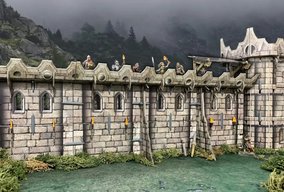 This box contains everything you need to build a section of two-storey city or castle wall measuring 12″ / 30cm long, suitable for many 28-35mm fantasy and historical games. The set includes decorative buttresses and fortified ramparts along with a wooden walkway halfway up the wall. Many of the pieces are modular and can be assembled in different combinations or mixed and matched with the rest of the range.