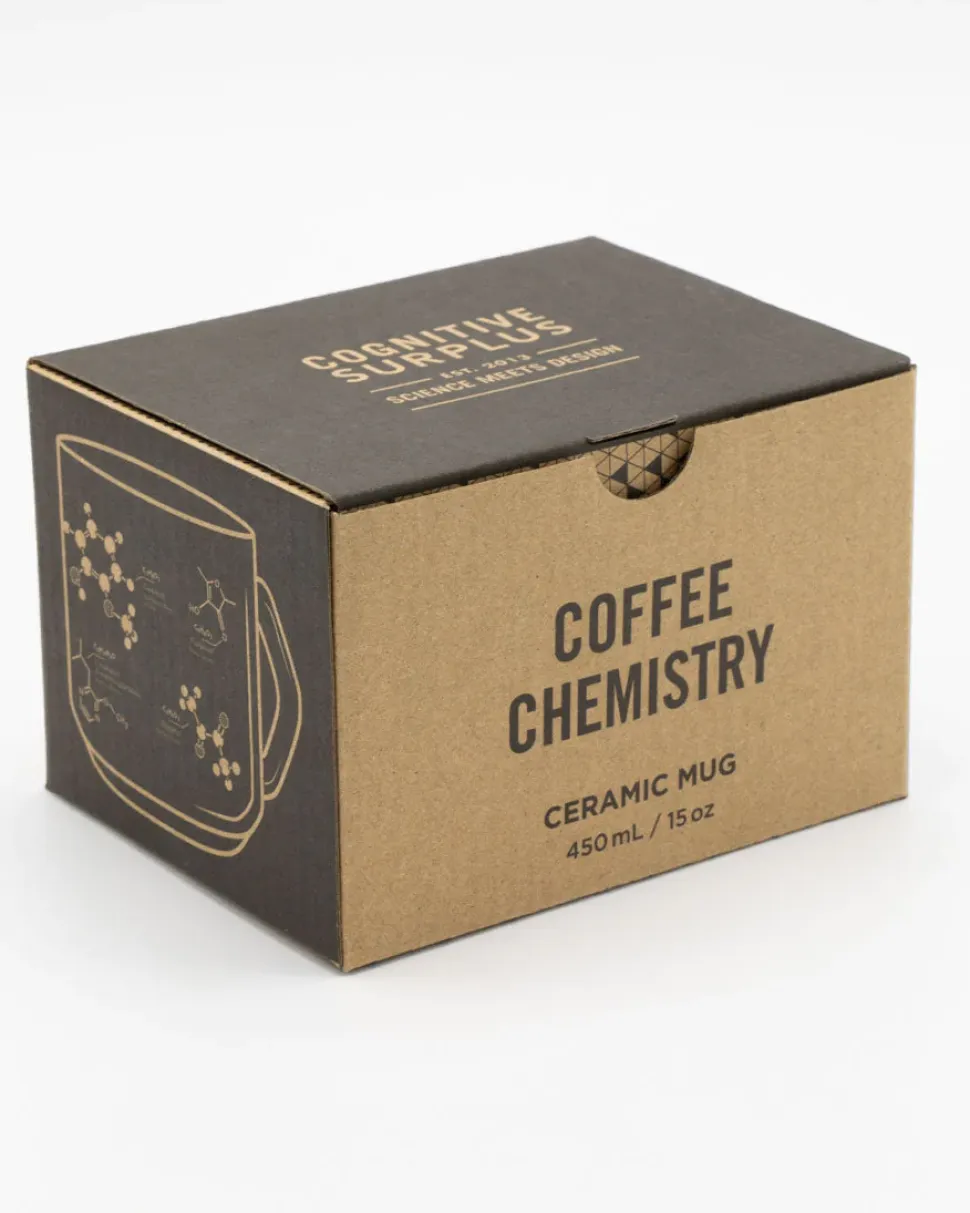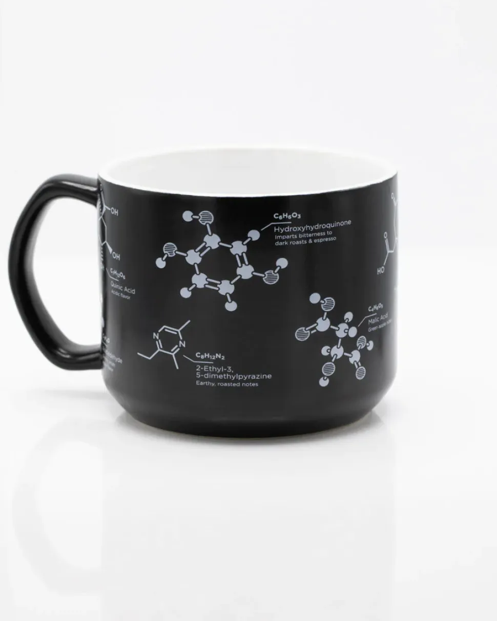 Celebrate the chemistry of your favorite morning elixir with this Coffee Chemistry mug. In classic black and white, this it not only holds your precious brew, but also serves as a visual reminder of the complex chemistry that makes coffee the drink you desire.