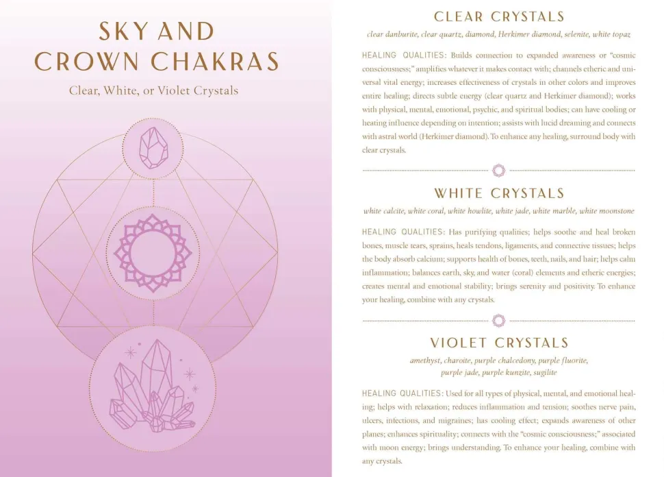 The Crystal Healing Reflection Journal offers inspiration and a space for beginners and experienced practitioners alike to reflect and expand their crystal healing practice. Organized by chakra, each beautifully illustrated section begins with the associated crystals for that chakra. The crystal’s healing qualities can soothe a diverse array of physical ailments such as pain, exhaustion, and stress to emotional concerns such as anger, sadness, and heartbreak. The remainder of each section features fill-in pages for your thoughts, experiences, and notes on each crystal healing session.