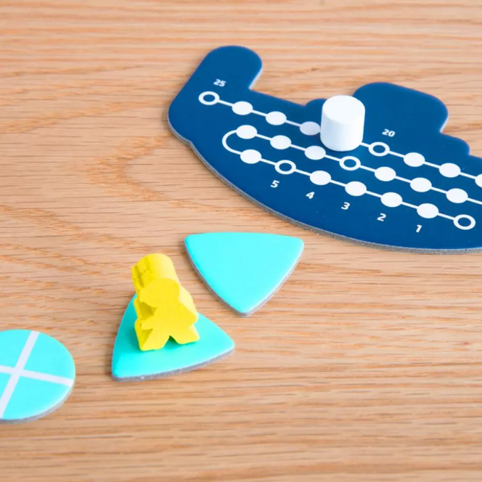 In Deep Sea Adventure, you and up to five other explorers are searching for riches under the sea, and while you’re all rivals, you’re also all poor, so you’ve pooled resources to rent a shared submarine…which means you’re sharing the air supply too. If you don’t return to the sub before air runs out, you have to drop everything in order to make it to safety.In each of three rounds, players take turns rolling dice and moving their diver along a trail of face-down treasure tokens. The deeper you go, the more valuable the tokens are!At the start of each turn, decide whether to dive deeper or head back toward the sub, lower the air supply, then roll the dice to move. On the space where you land, you can do nothing, pick up treasure (not looking at it and replacing it with an X token), or dropping off treasure in an X space.Why would you drop the object of your dreams? Because you need to make it back to the sub in order to score your treasure collection, and for each object you hold, you subtract 1 from the movement dice. Pick up too much, and you might not move at all. Glub.Deep Sea Adventure Boost features the same gameplay and components as Deep Sea Adventure, but it adds three new dice for a new way to play. These dice feature the digits 0 & 3, 1 & 3, and 1 & 2. When you roll, you now roll these three dice, then choose two of them to determine your movement, although you still subtract points for the treasure you hold.What’s more, at the start of your turn, you can decide to «boost» your movement by using the sum of all three dice — but doing so uses an addition unit of air. Will your need for speed leave everyone gasping?(The original dice for Deep Sea Adventure are also included.)