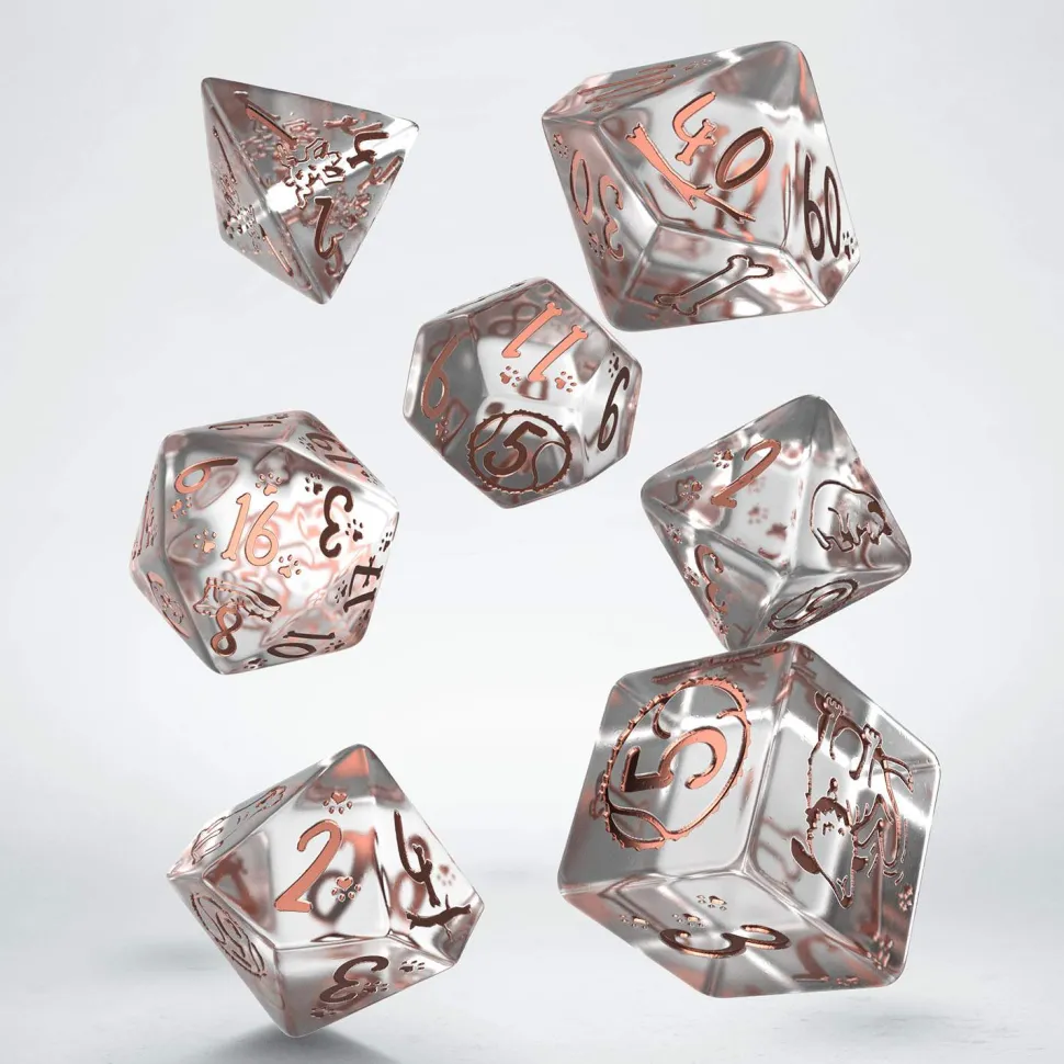 The DOGS Dice Set: Bubbles is not just a tribute to man’s best friend; it’s also a symbol of pups who love to swim and joyfully splash in the water. The copper engravings on a transparent background symbolize the bond between dogs and the unrestrained fun of enjoying the water.