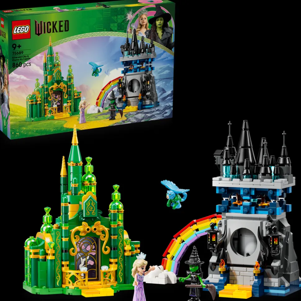 Gi barn fra ni år et «unlimited» antall Wicked-eventyr med den byggbare lekegaven Emerald City og Kiamo Ko-slottet (75689). Jenter, gutter og fans av filmen kan gjenskape den følelsesladde sluttscenen fra Wicked: For Good og rolleleke at de er Glinda i Emerald City og Elphaba Kiamo Ko-slottet.