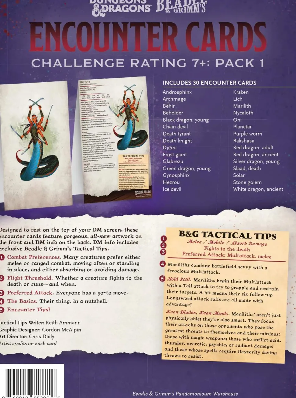 Designed to rest on the top of your DM screen, these 30 encounter cards featureall-newgorgeous artwork on the front and DM info on the back. DM info includes the full D&D stat block and exclusive Beadle & Grimm’s Tactical Tips.
