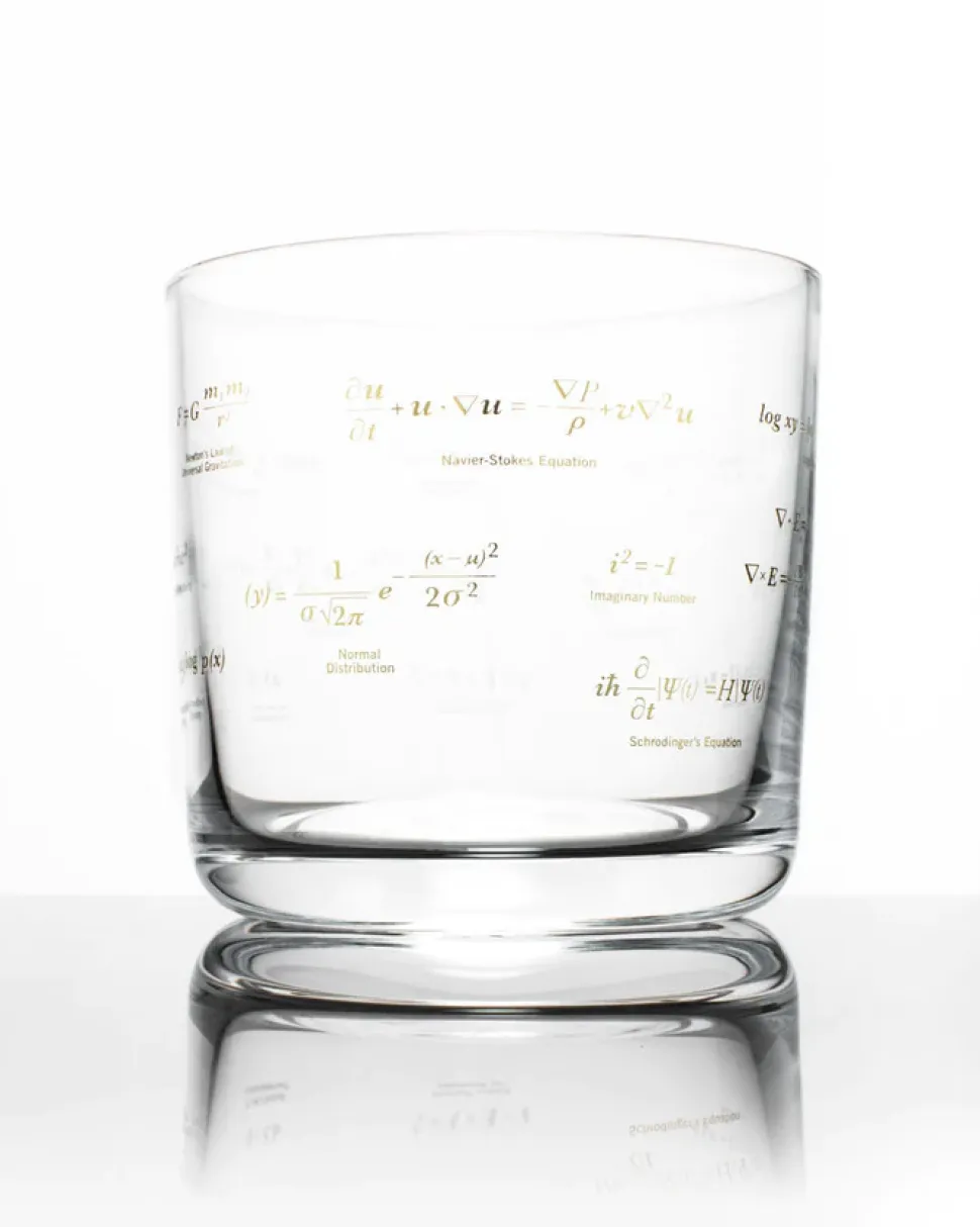 This whiskey glass celebrates some of the equations that fundamentally changed the way we understand our world. Let it inspire you to dive deeper into your work, complete that problem set, or find creative ways to work out your proof. Raise a glass to mathematics with this Equations That Changed the World Whiskey Glass.