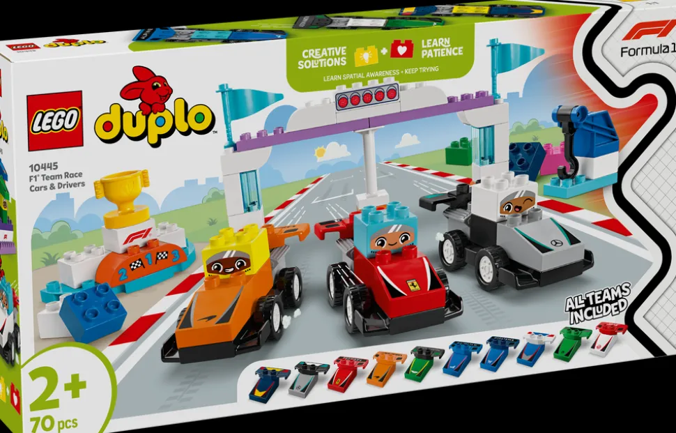 Med byggeleken F1® Team med racerbiler og sjåfører (10445) er alt duket for spennende billøp. Familier kan gjenskape spennende billøp med et gøyalt lekesett for F1®-fans og unge depotteam