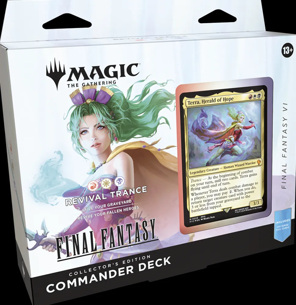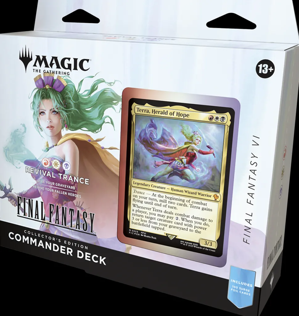In Commander, four players come together to show their strength and strategy, with one player coming out on top. Each 100-card ready-to-play Magic: The Gathering®—FINAL FANTASY Commander Deck: Collector’s Edition makes it easy for Commander fans in your store to grab a deck and play right away.