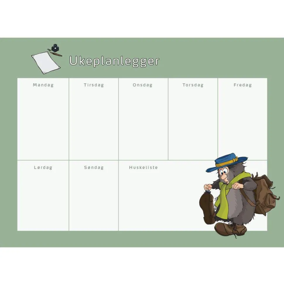 Flåklypa ukeplanlegger med plass til notater mandag til fredag og egen huskeliste. 52 ark som er lette å rive av. Veldig praktisk notatblokk. Nå kan du planlegge hjemme eller på jobb og begynne med blanke ark hver uke.
