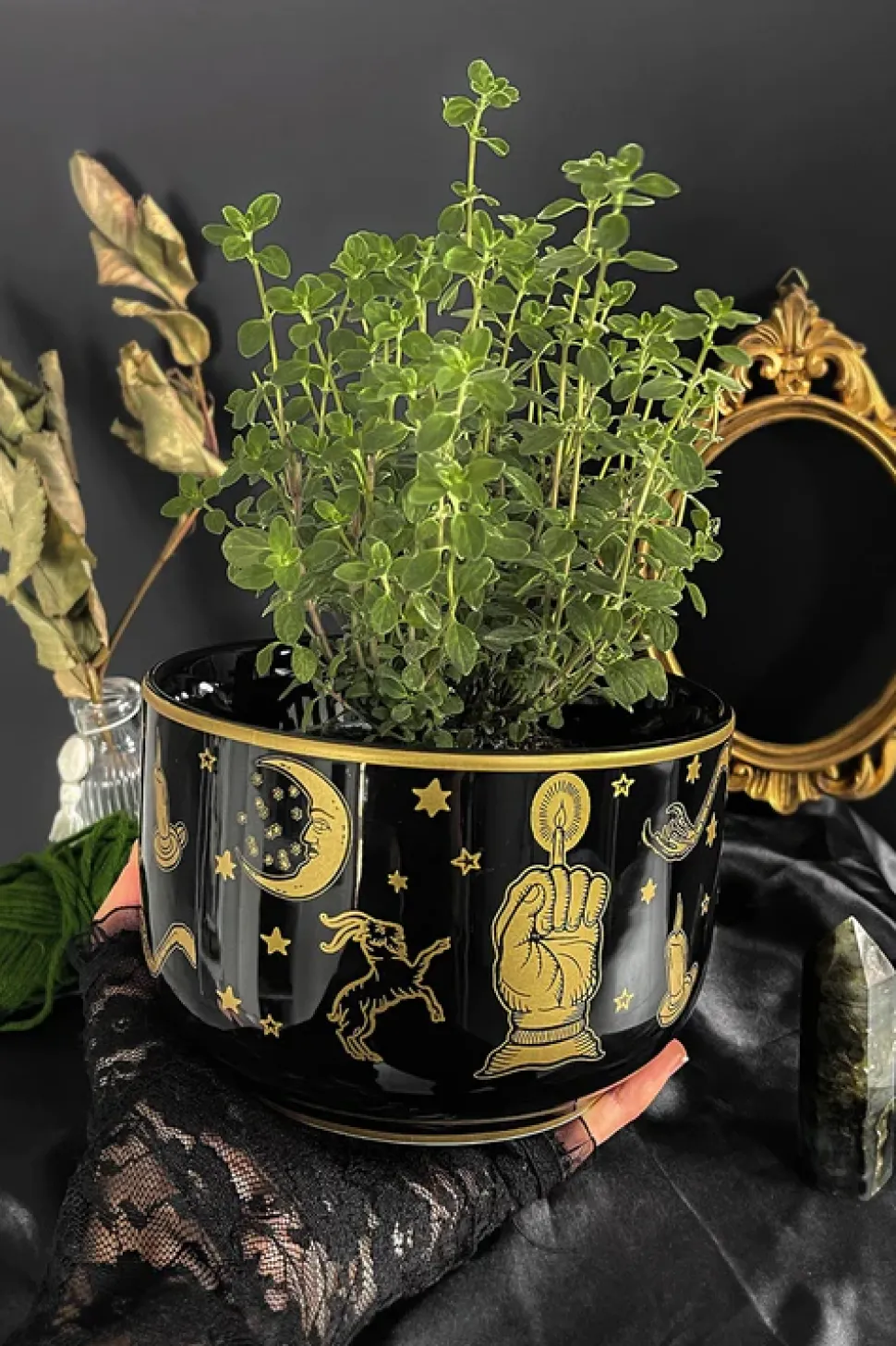 – Statement black porcelain planter.