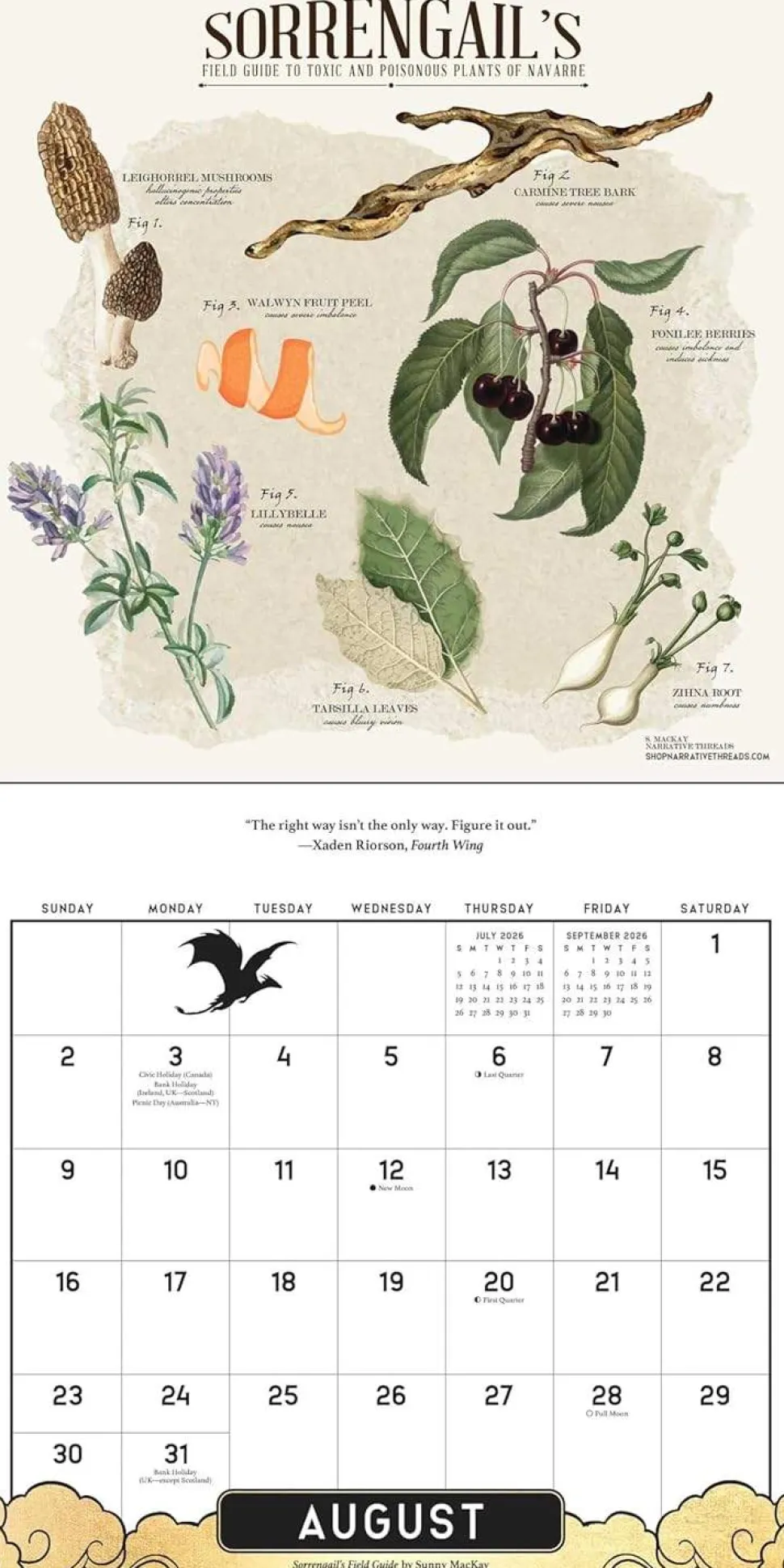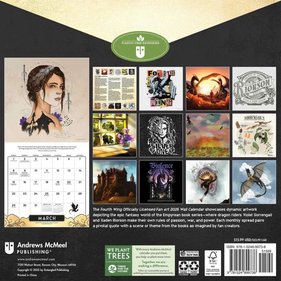 Each monthly spread pairs a pivotal quote with a scene or theme from the books as imagined by fan creators.