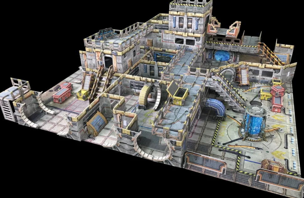 The terrain is supplied flat-packed on high-quality, high-density card, printed in full colour on both sides, so no painting required! The terrain requires assembly, and some smaller parts will require glue.