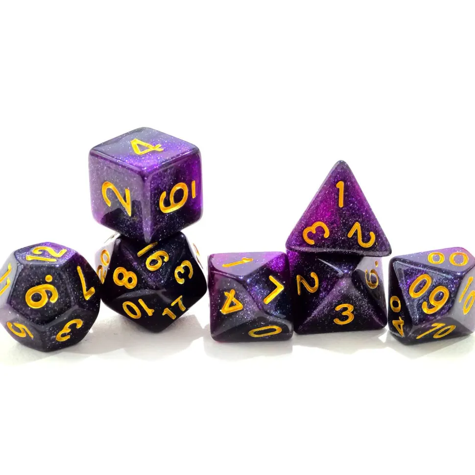 Et sett med syv forskjellige terninger, som passer til rollespill. Inkluderer: D4, D6, D8, D10, D12, D20 og en prosentterning.