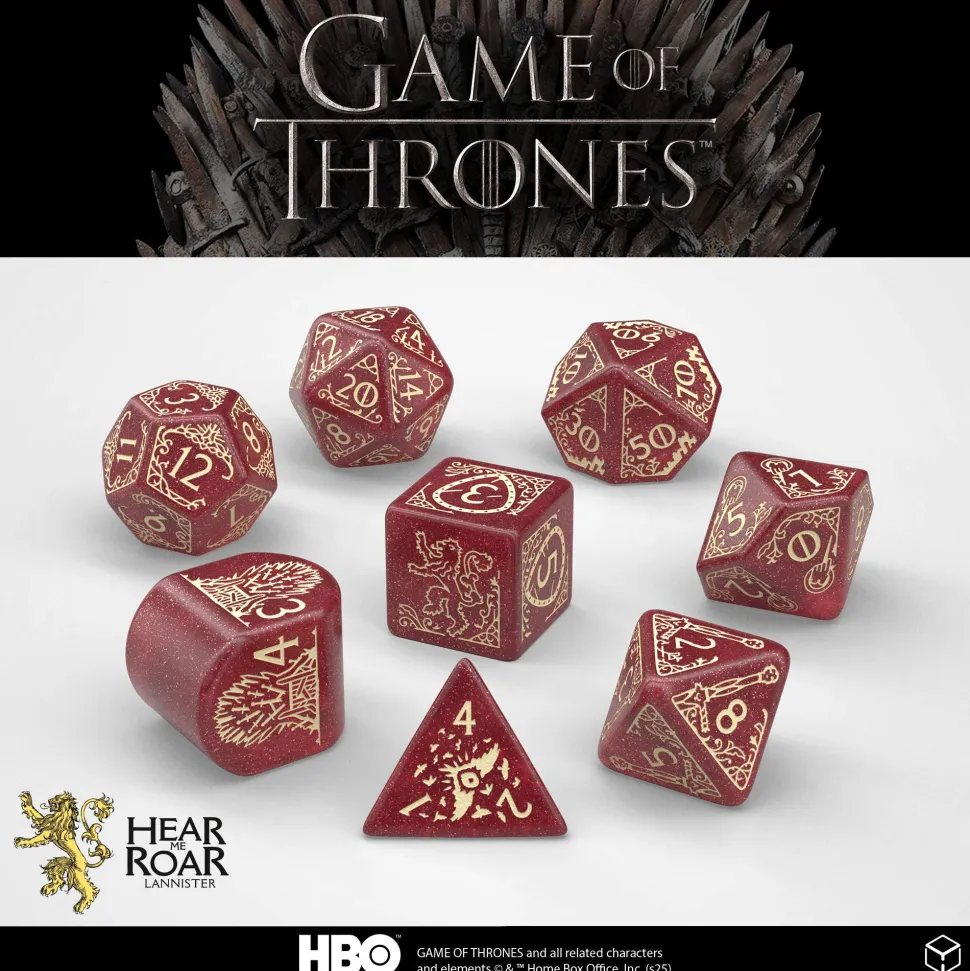 The Markings of Lannisters – The highest value faces of each dice feature markings known to the GoT fans: the iconic lion sigil, the Hand of the King’s brooch, Casterly Rock, and the words Hear Me Roar!