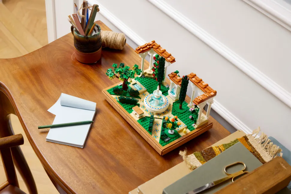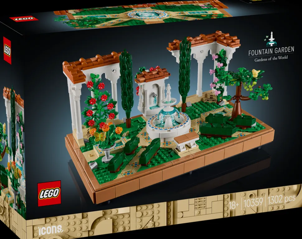 - Byggesett med en utsmykket hage for voksne – unn deg selv en meditativ pause med byggesettet LEGO® Icons Hage med fontene