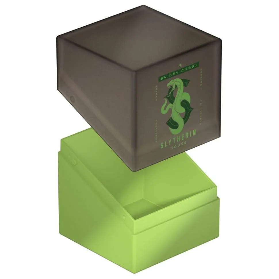 Show your House allegiance to Gryffindor, Slytherin, Hufflepuff or Ravenclaw with the Harry Potter Boulder 100+ deck box from Ultimate Guard. The durable card box is easy to open despite its secure closure, has a pleasant soft-touch surface and offers space for 100 (in double protective sleeves) or 120 (in single protective sleeves) cards of standard size or smaller, for example from Magic: The Gathering, Lorcana, Pokémon or Yu-Gi-Oh!