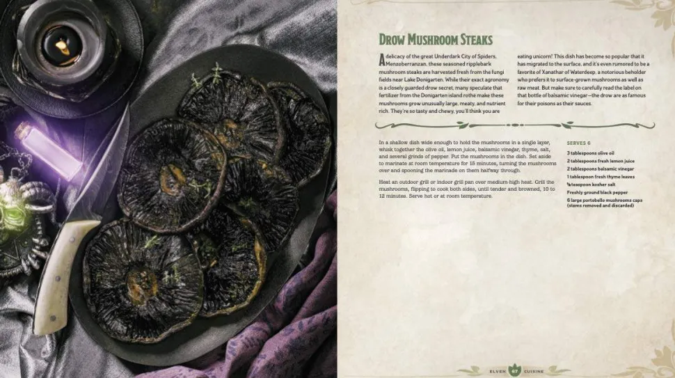 Heroes’ Feast includes recipes for snacking, such as Elven Bread, Iron Rations, savory Hand Pies, and Orc Bacon, as well as hearty vegetarian, meaty, and fish mains, such as Amphail Braised Beef, Hommlet Golden Brown Roasted Turkey, Drow Mushroom Steaks, and Pan-Fried Knucklehead Trout – all which pair perfectly with a side of Otik’s famous fried spiced potatoes. There are also featured desserts and cocktails – such as Heartlands Rose Apple and Blackberry Pie, Trolltide Candied Apples, Evermead, Potion of Restoration, and Goodberry Blend–and everything in between, to satisfy a craving for any adventure.