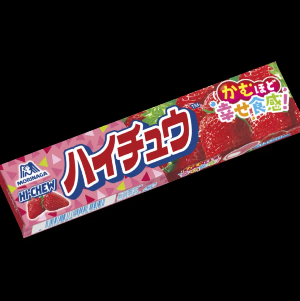 Det Japanske godteriet Hi-Chew ble sluppet på markedet i 1975, og er et resultat av at Taichiro Morinaga ønsket å produsere tyggegummi som kunne svelges. Resultatet Hi-Chew er ikke helt som tyggegummi, men heller som et tyggbart godteri med fruktsmak. Denne varianten har smak av jordbær.