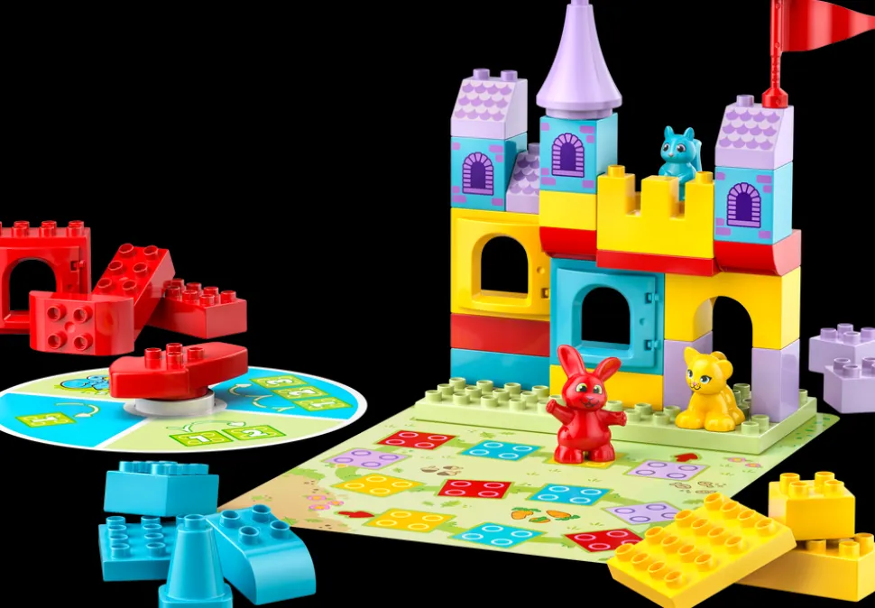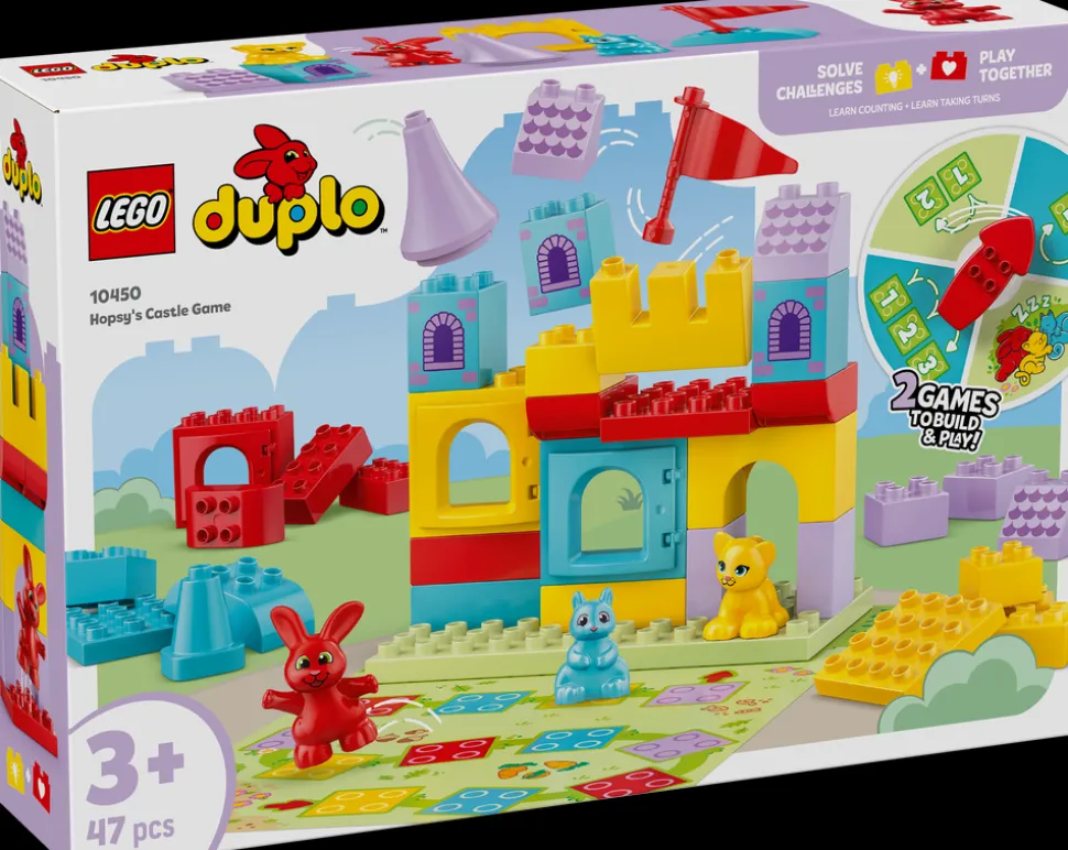 - Lekesett for læring gjennom lek – bli med på gøyale familieaktiviteter med 2-i-1-brettspillet LEGO® DUPLO® Hopsys slottsspill for førskolebarn