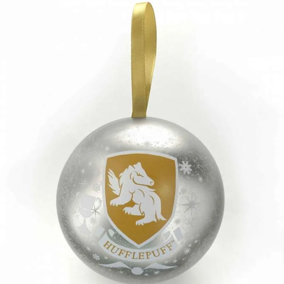 This Gold metallic tin bauble is printed with the Hufflepuff House design on one side and Harry Potter logo on the other and contains a Hufflepuff house necklace.