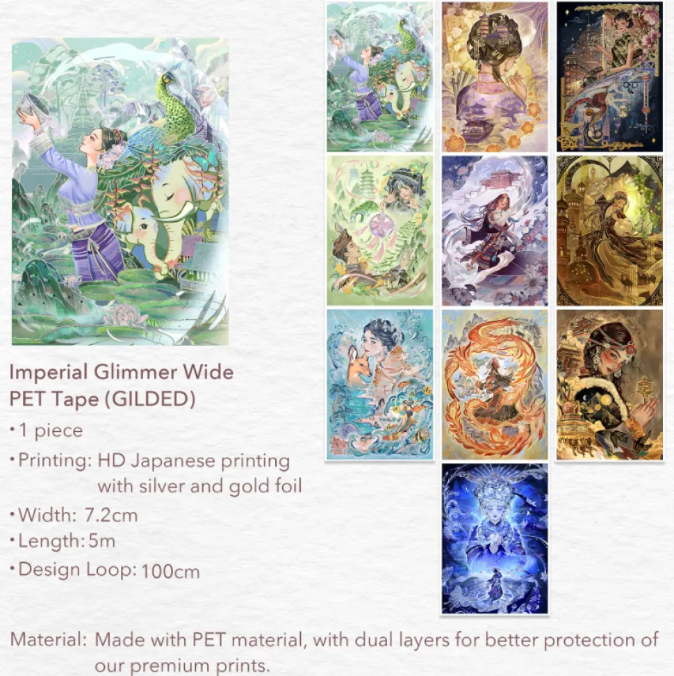 A stunning celebration of Eastern culture and diversity! This gorgeous tape features a PET material option with exquisite gold and silver gilding that adds a touch of elegance and sparkle to your projects.