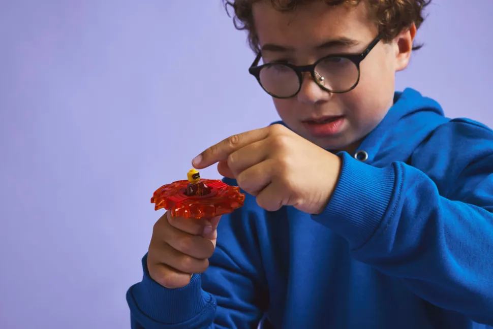 - To NINJAGO® minifigurer – dette byggesettet for barn inkluderer Kai som plasseres i Spinjitzu-spinneren, en skurkaktig dragonspeider og en liten drageskapning