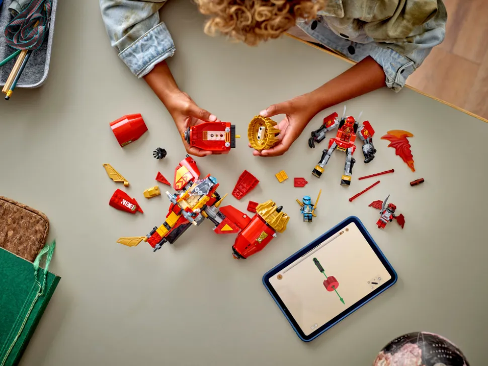 - Kombi-ninja-leke – dette store NINJAGO® ninja-fartøyet kan deles opp i to mindre modeller: Kais robot og Nyas flygende motorsykkel, slik at barn får enda mer gøyal ninja-lek