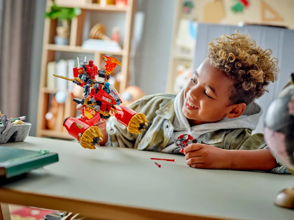 - Ninja-leke for barn – med settet Coles titan-dragerobot Kais stormrytter-robot kan jenter og gutter fra sju år gjenskape spennende kamper fra sesong 3 av TV-serien NINJAGO® Dragene våkner