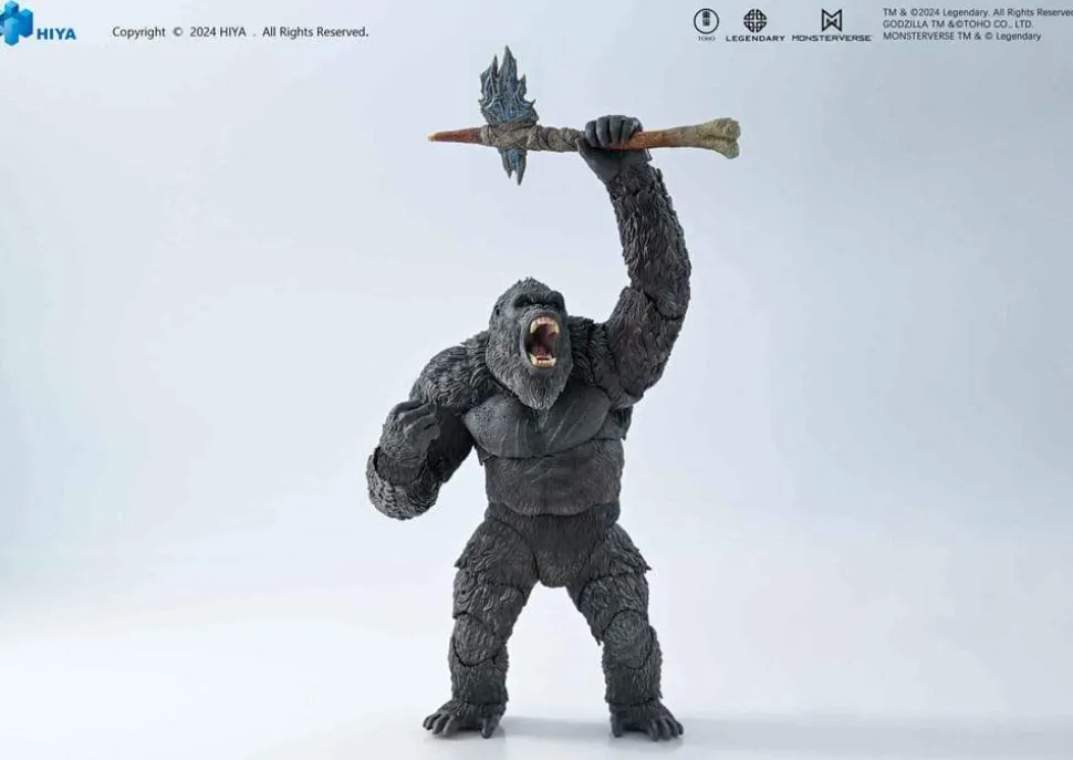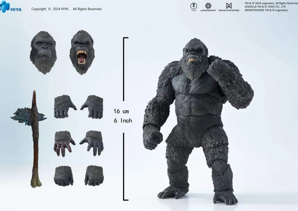 With comprehensive upgraded joints, providing a wide range of motion for recreating various poses, such as quadrupedal stance, or criss-cross. Accessories include a translucent battle-ax and 3x pairs of interchangeable hands, allowing you to recreate iconic scenes. About the head sculpt, in addition to normal face, roaring battle face, and snarling face, enabling you to depict a more dynamic and fierce Kong, capturing the essence of the mighty king!