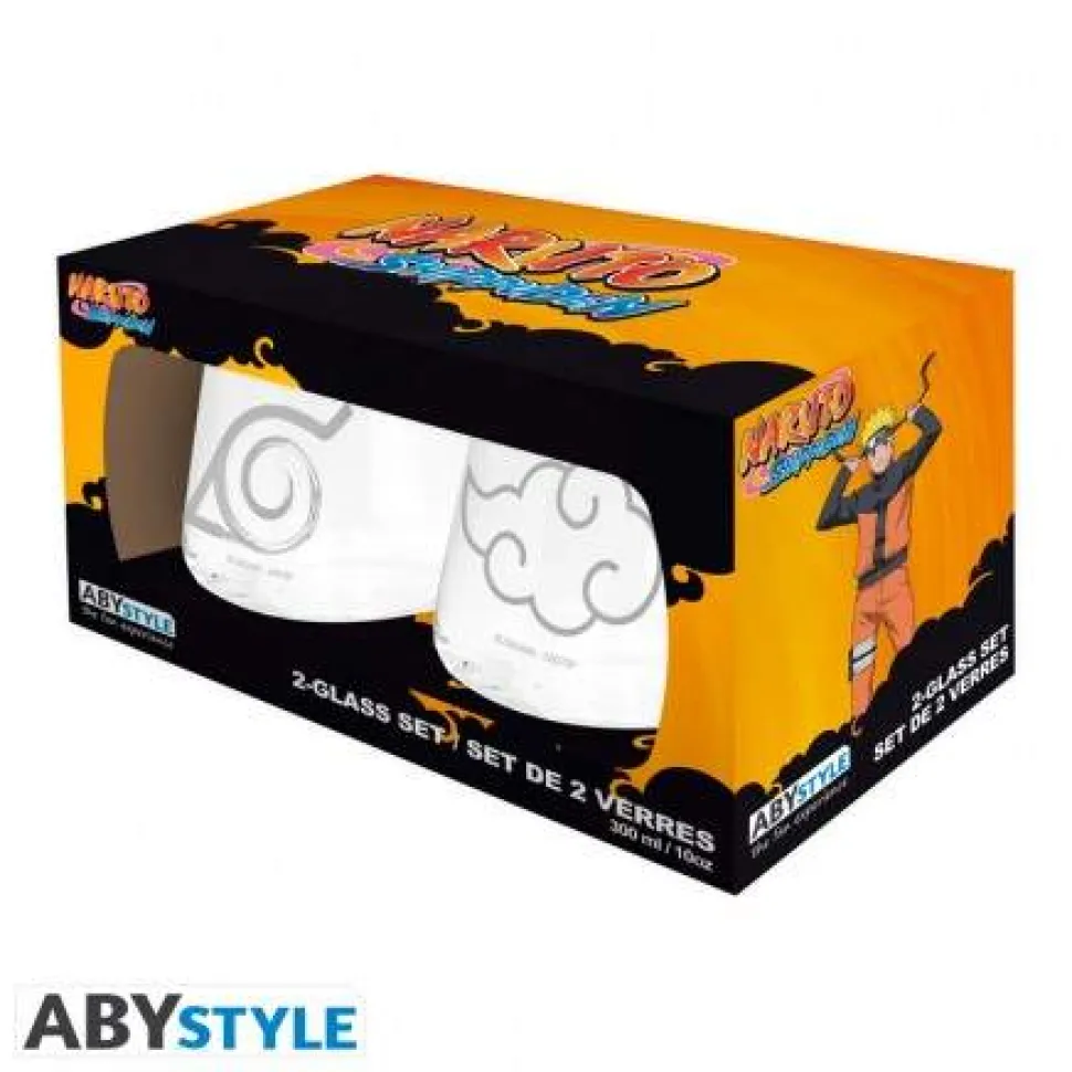 You will find the symbols of Konoha village and the Akatsuki on this Naruto Shippuden 2 glass set by ABYstyle.