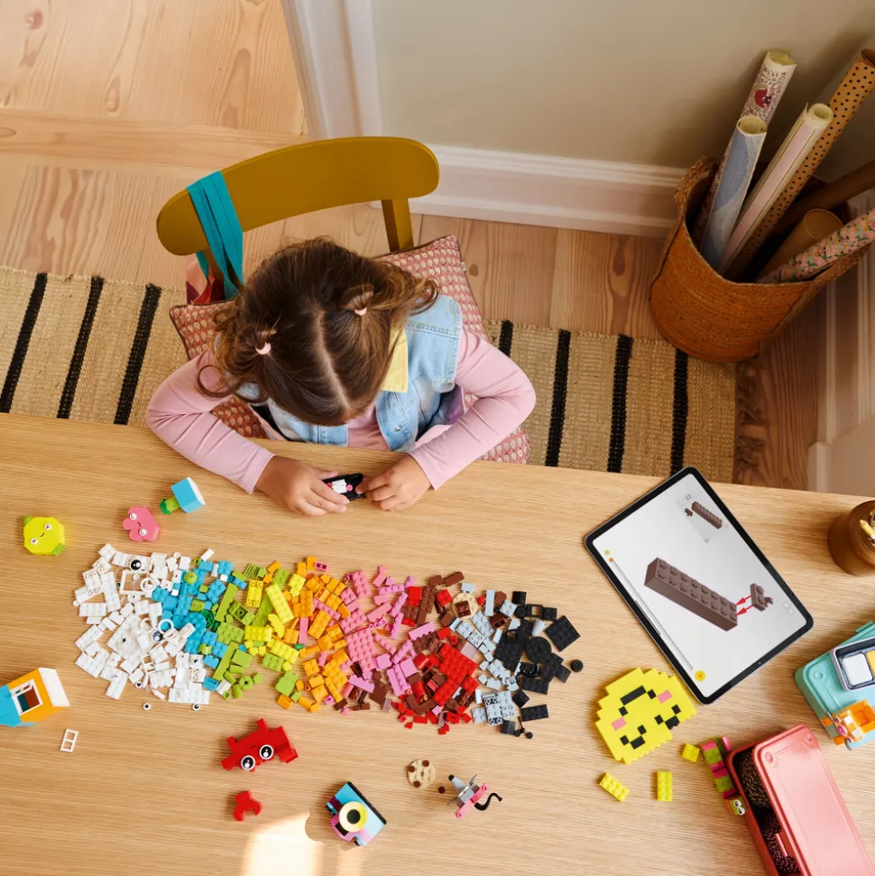 - Fargerike byggeklosser – settet Kreativ lykkeboks for barn er en LEGO® klosseboks full av farger, byggbare modeller og lekemuligheter som passer for jenter og gutter fra fem år