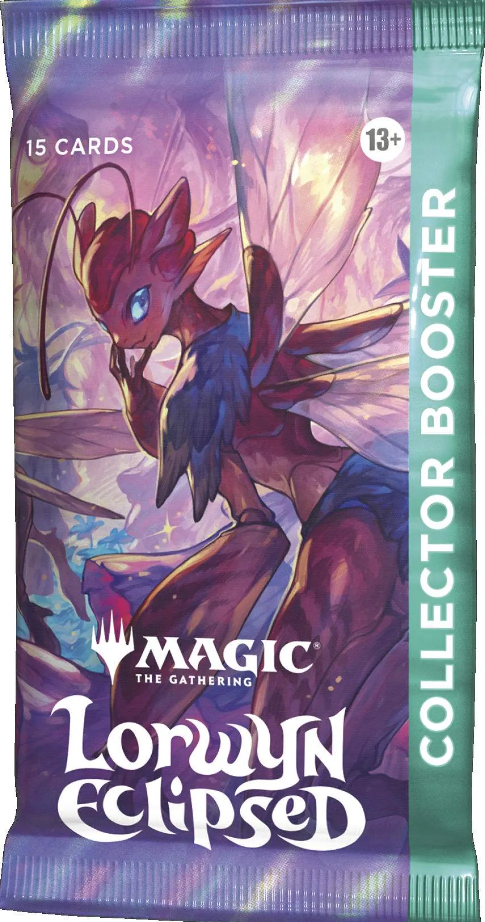 Gather a bountiful bouquet of the brightest and boldest from Lorwyn Eclipsed! Each booster pack contains rares and/or mythic rares, foils, and a full-art basic land in either its Lorwyn or Shadowmoor form. You may also happen upon borderless reversible shock lands, fable frame cards, and borderless cards illustrated by classic Magic artists. Once in a blue moon, a very special pick could appear: 1 of 500 serialized headliner Bitterbloom Bearer cards featuring art by Rebecca Guay!