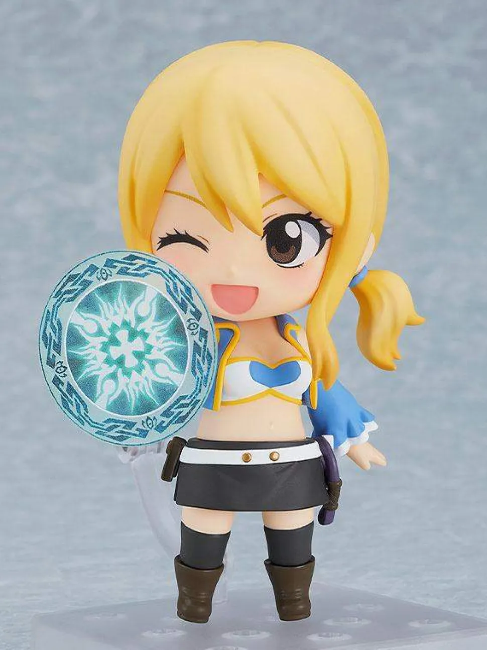 She comes with three face plates including a standard expression, a smiling expression and a winking expression. Optional parts include a Celestial Spirit Key, two kinds of whip parts and a Celestial Spirit summoning effect part. Enjoy creating all kinds of situations in Nendoroid form! Be sure to add her to your collection!